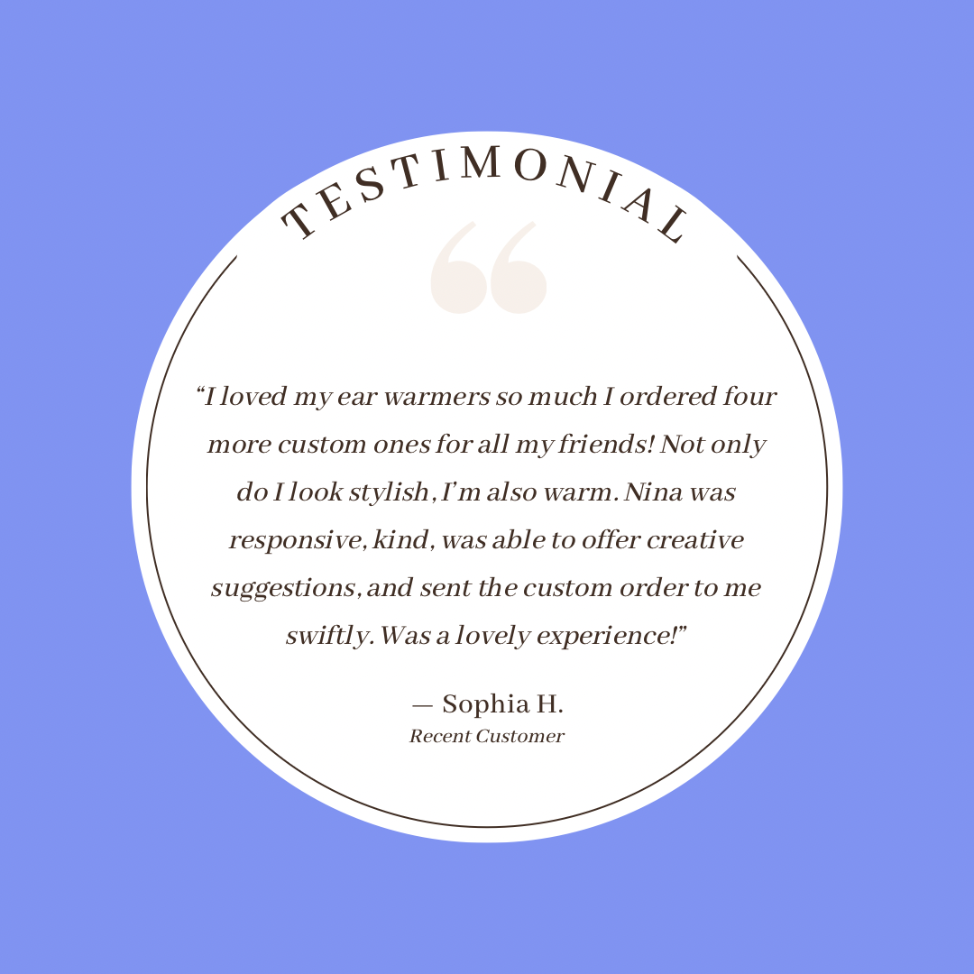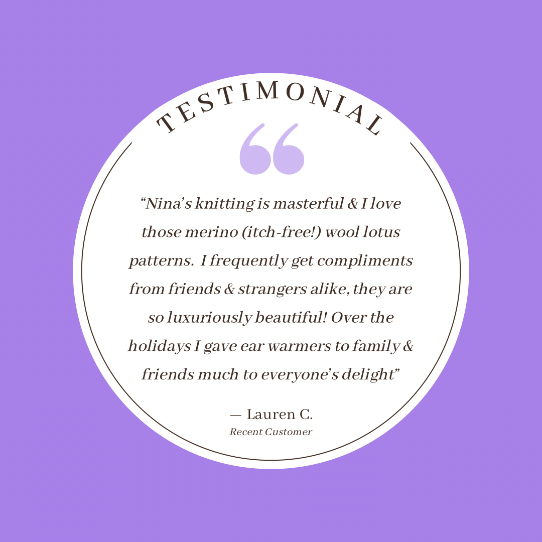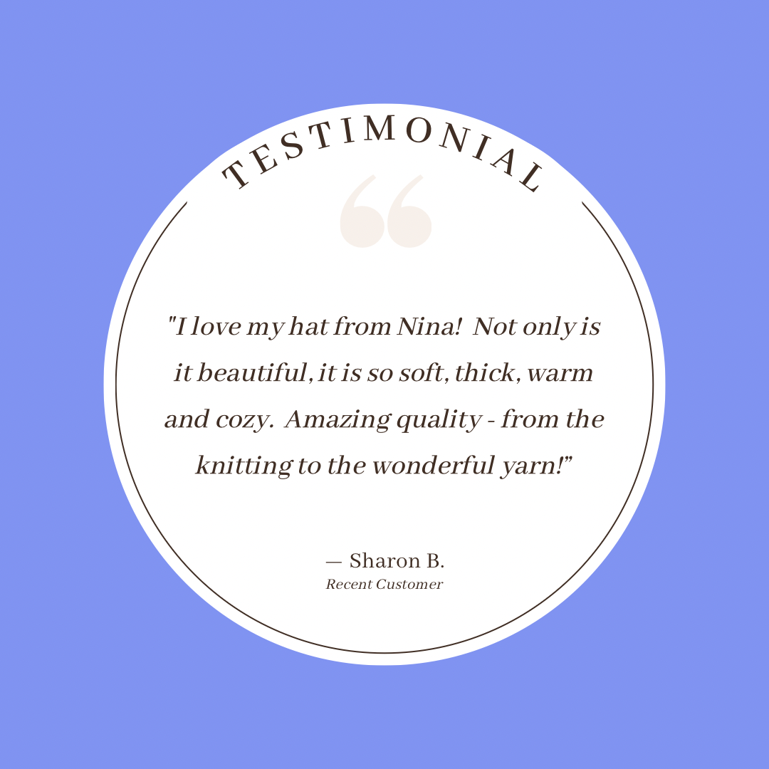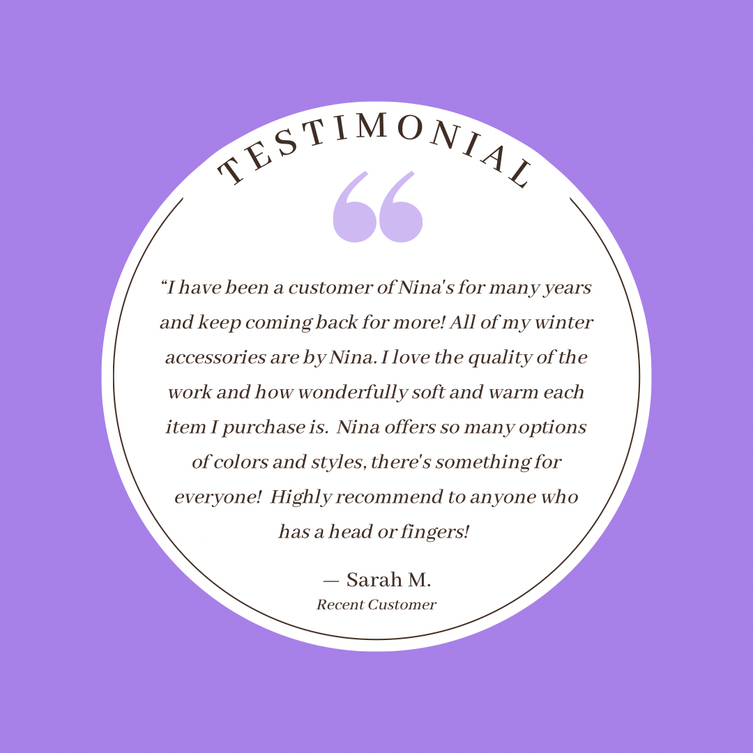 I'm Nina and started knitting when I was young. Over the years with the help of my Grandmother I learned how to make scarves, hats, and mittens. Once I perfected those skills I challenged myself and found some fun patterns online and started creating those as well. This will be a collection of all the beautiful items knit with love that I’ll be sharing with you!