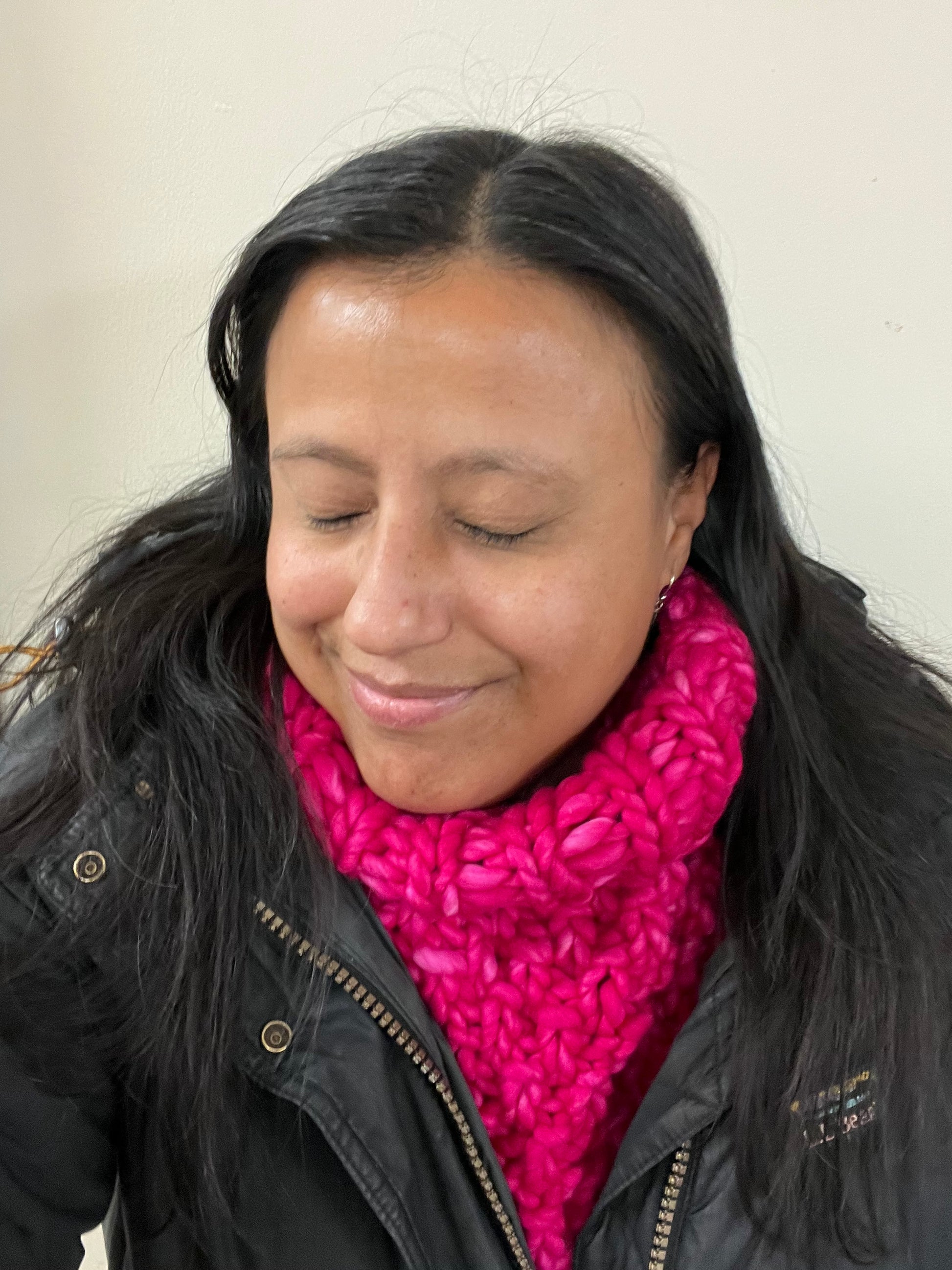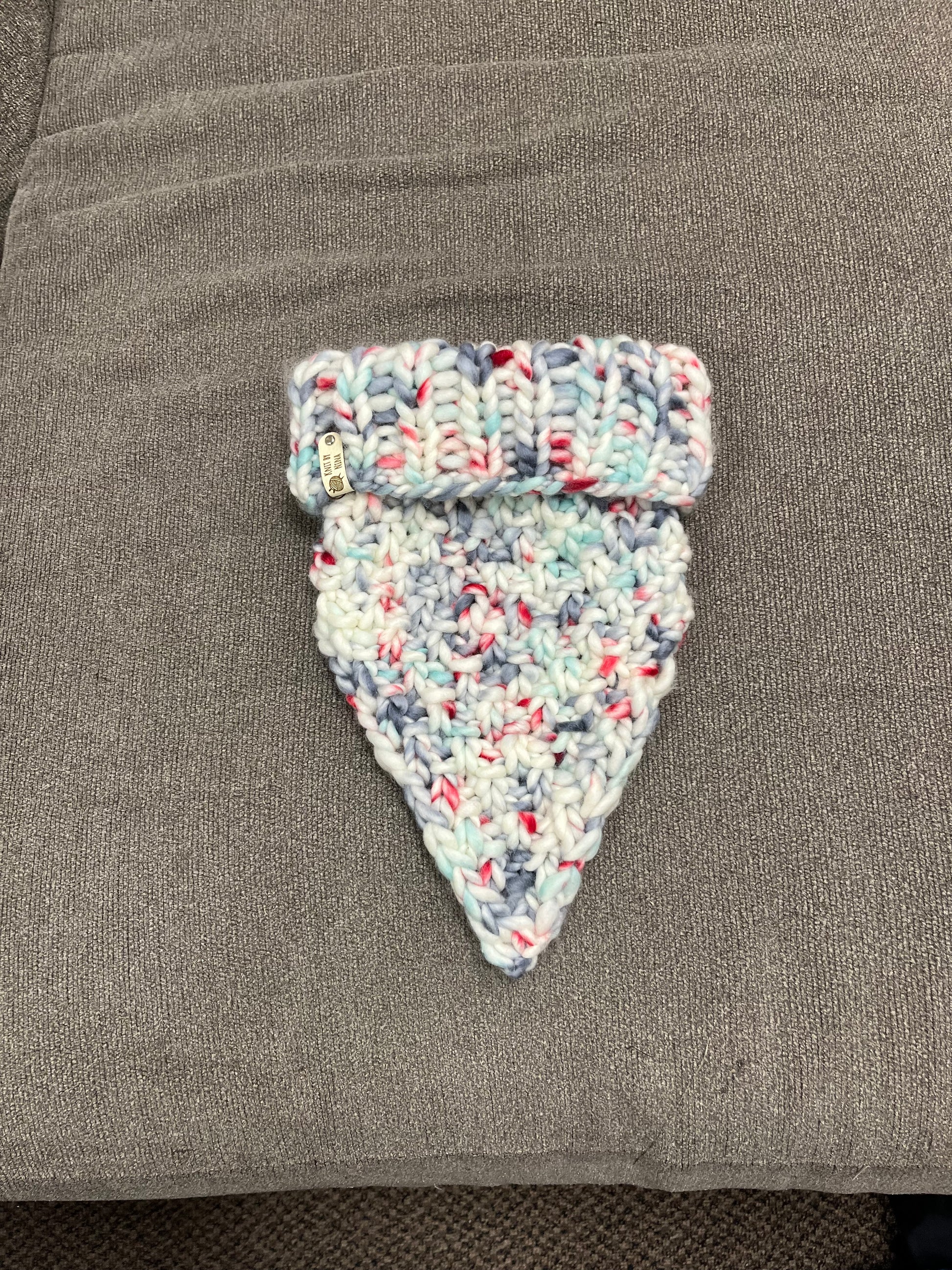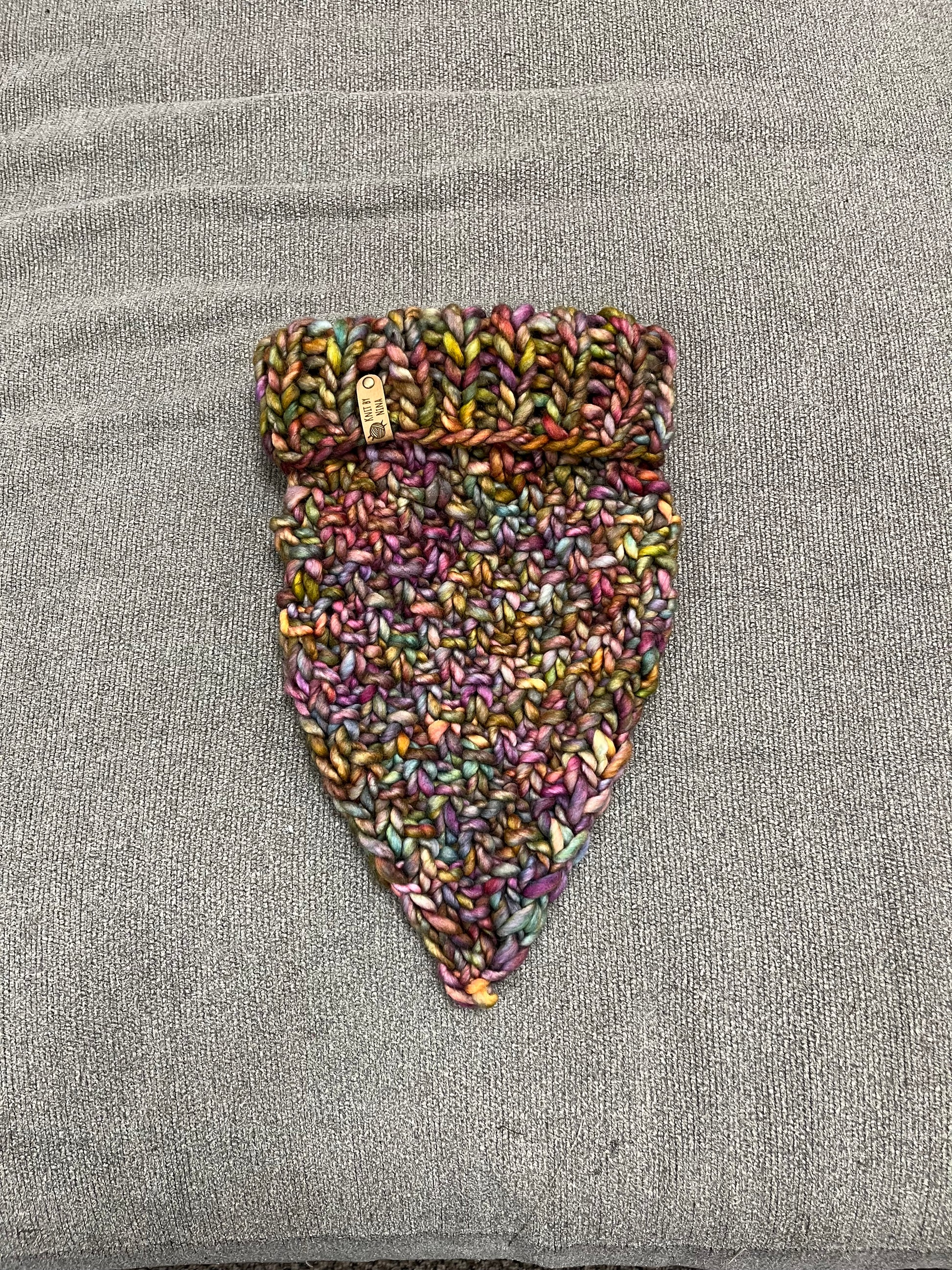 You can wear this two different ways! Keep the neck down or pull it up when it’s windy and cold!