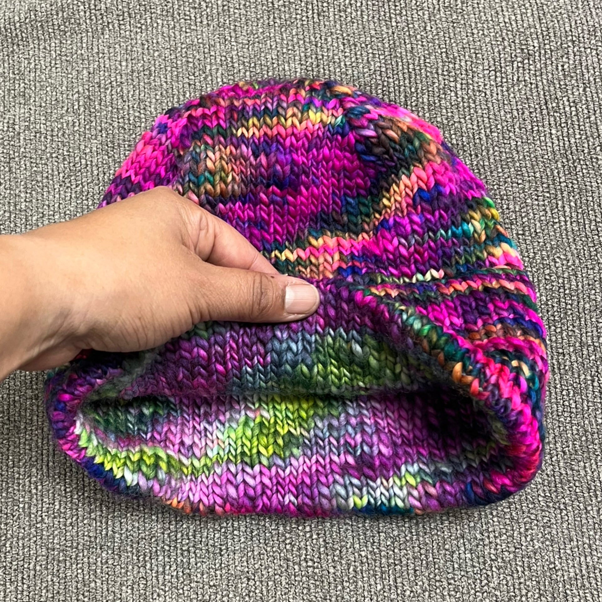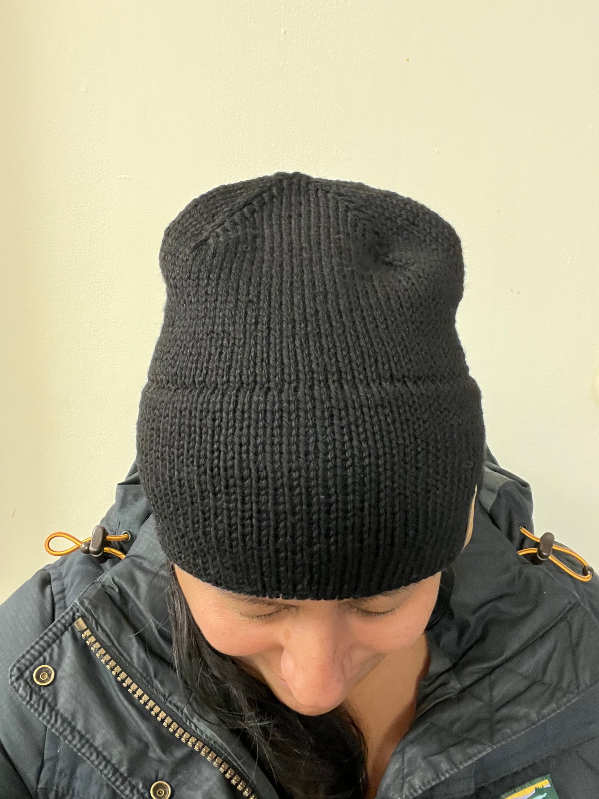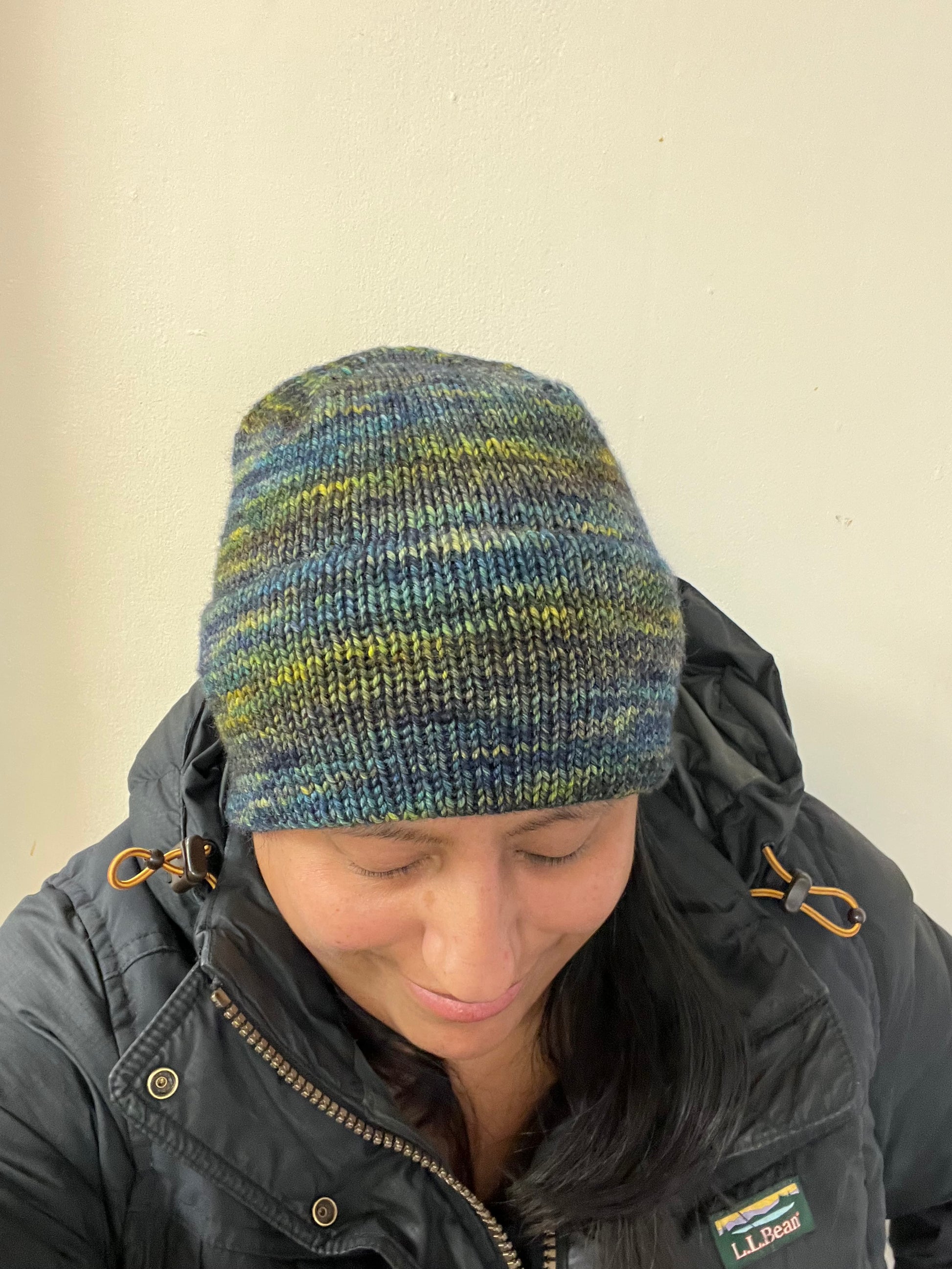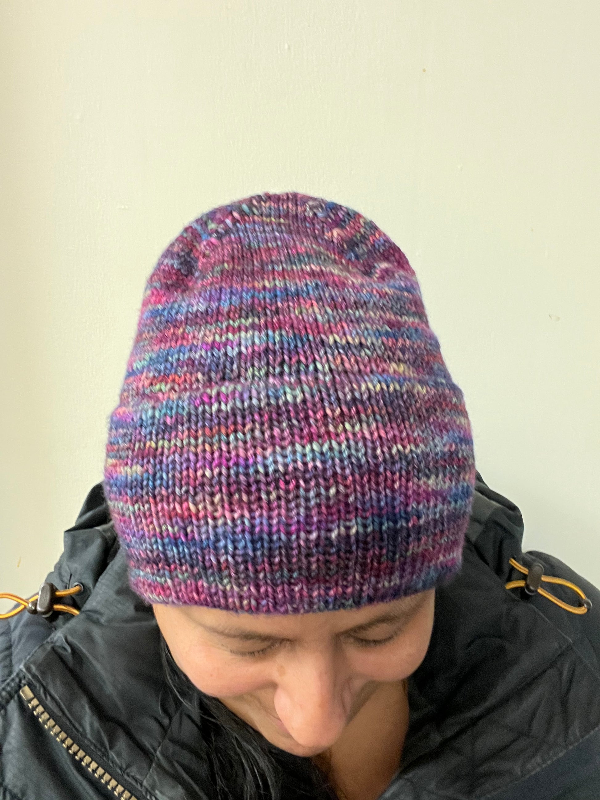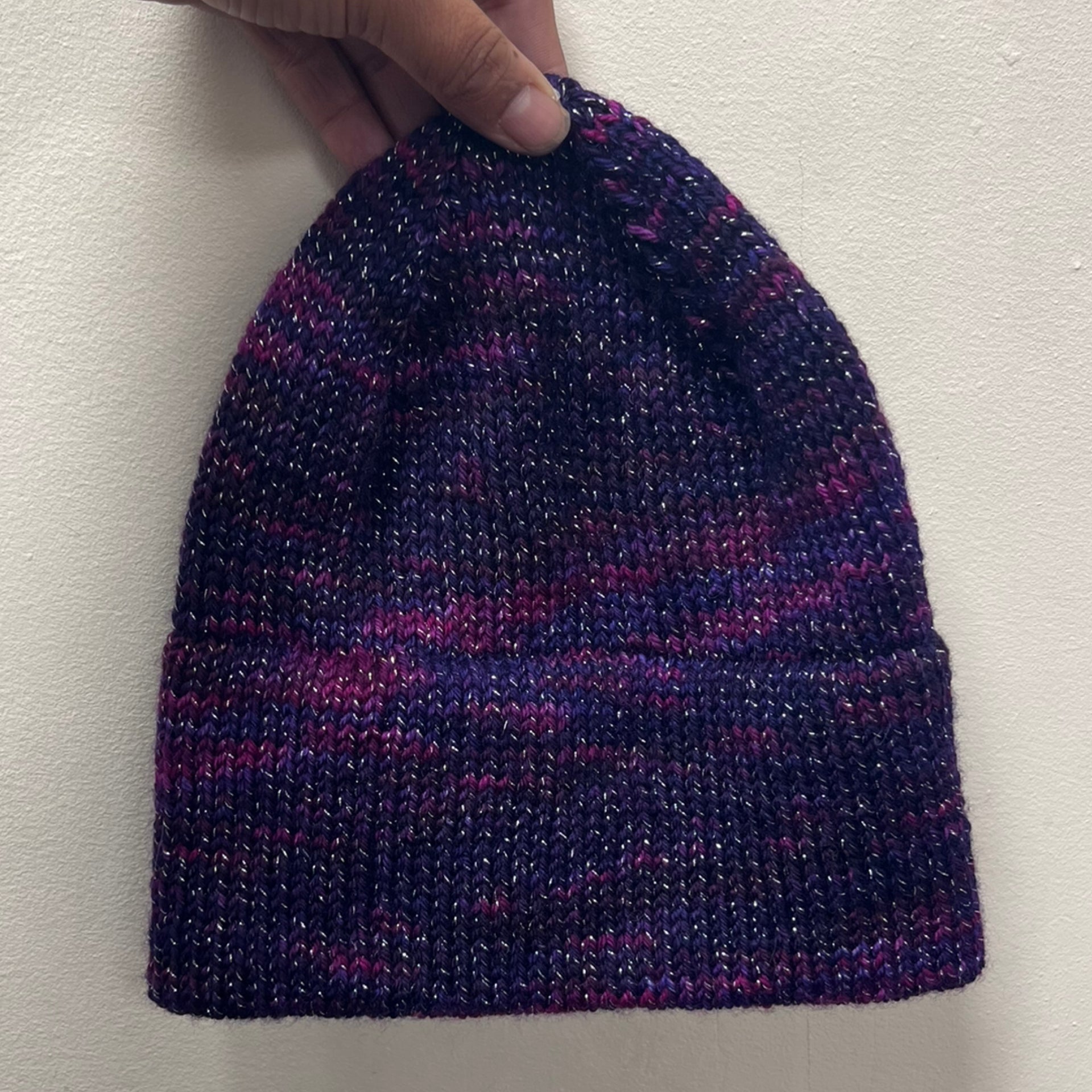 Worsted Weight (light) DOUBLE peek a boo (hidden) brim Beanies that are perfect for spring! Made with Hand Dyed 95% Super Wash Merino / 5% Lurex Sparkle DK wool from Fainting Goat Fiber Co and or Malabrigo Rios 100% super wash merino wool