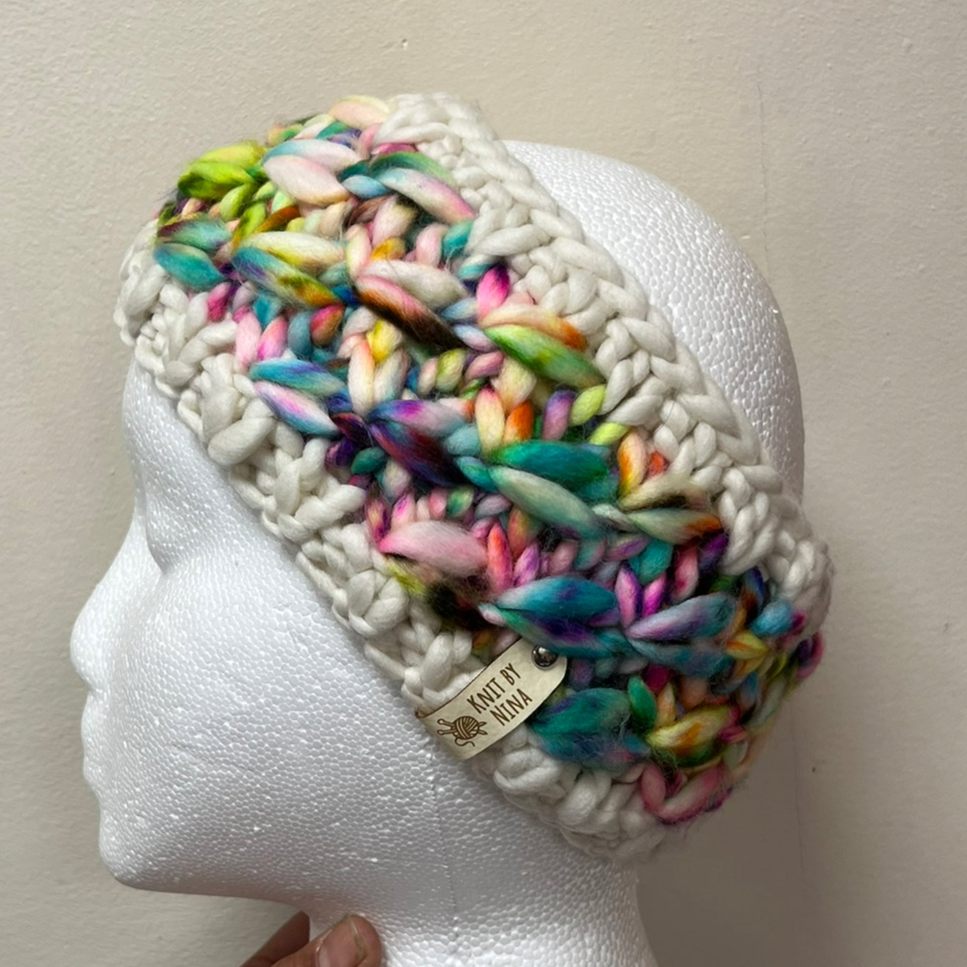 Warm and soft ear warmers with a gorgeous texture. Unique items Made with 100% hand dyed super wash merino wool and or 100% Merino Wool (super bulky). Hand wash cold lay flat to dry.