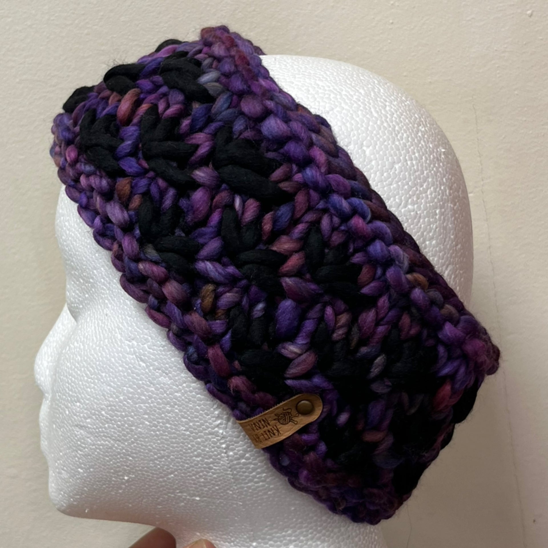 Purple & Black Luxury Lotus Flower Ear Warmer